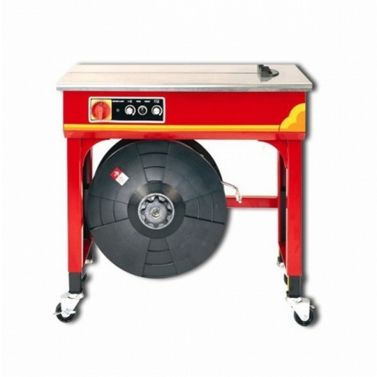 Tafelmodel geschikt voor het snel en eenvoudig omsnoeren van al uw artikelen: band rond het te omsnoeren product leggen en terug invoeren. Het toestel spant de band aan, sealt de band, snijdt af en voert de band terug uit op de vooraf ingestelde lengte. De band wordt gespannen volgens de vooraf ingestelde spanning (elektronische regeling!).